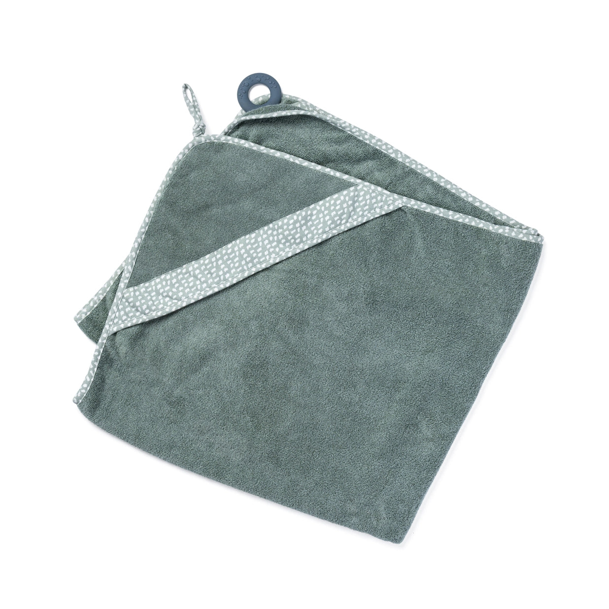 The silicone teether lets you fasten the cape around your neck like an apron - this means you can bathe your baby hands free, then lift them safely from the water and wrap them straight into warmth. Once baby is on the change table, the teether doubles as a playful distraction to keep little hands busy while you dry them off.
