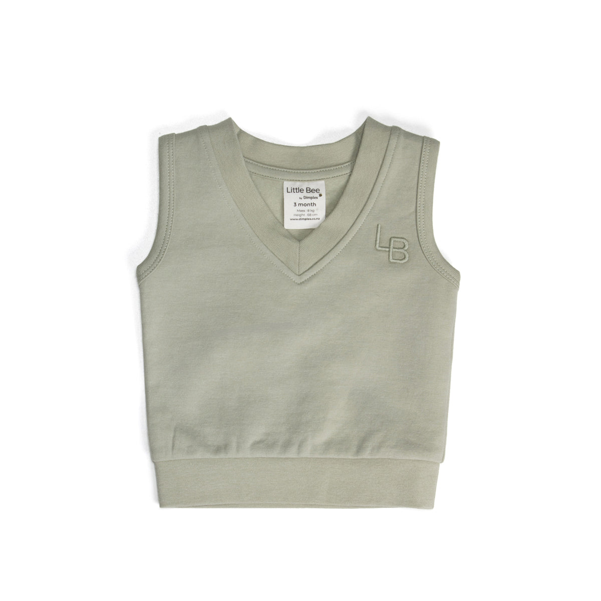 Featuring a classic V-neck design, this vest is not only fashionable but also functional with arm and waistbands that ensure a snug and comfortable fit. Whether it's a casual day out or a special occasion, this versatile vest is a must have addition to your baby's wardrobe. Mix and match with the rest of this collection for extra cuteness!