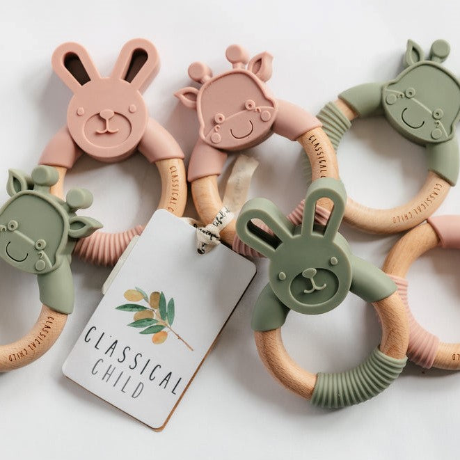 Crafted from smooth beech wood and food grade silicone, our teether is designed as a the perfect accessory for your child.