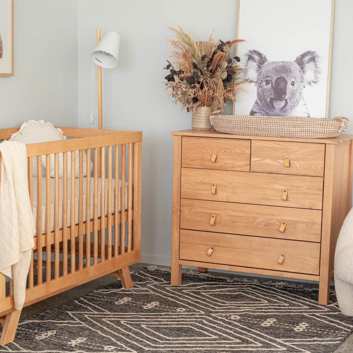 This set combines elegance, comfort, and everyday functionality. Made from solid ash timber, the Mackenzie Cot and Dresser showcase classic design and durability that will last from newborn through to toddler years. The ComfiCore Cot Mattress completes the set, offering the perfect balance of firmness and breathability for a safe and cozy sleep.