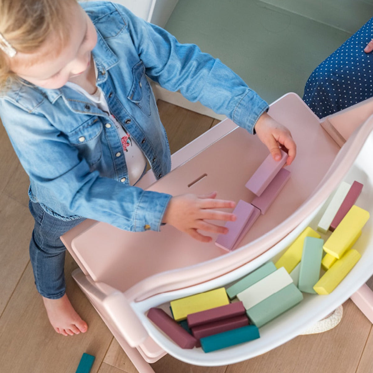 Later, as your child grows, they can keep their games and art supplies in their favourite chair, ready to use at family time around the table. This means that Stokke Tripp Trapp® Storage can be utilized for the lifecycle of your Stokke Tripp Trapp® chair, from newborn into adulthood.